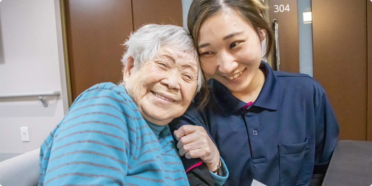 今まで変わらない生活がしたい、自分のことは自分でしたい利用者様のそんな思いに応え、可能な限り自分でできることはしていただく、楽生苑では、ホテルのような非日常的ではなく、家族とともに過ごしているような日常の延長をめざしています。